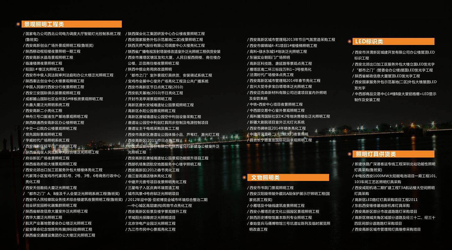 以构筑物、山体、水体、景观等为载体,结合自然人文特色,挖掘项目的文化内涵,利用现代景观装置、灯光、水景、园林小品及建筑灯光等景观元素,打造适合项目定位具有特色的夜景名片。亮化照明主要针对不同的应用有不同的定位,主要可分为城市事件、城市夜景照明、文体空间照明、建筑景观照明、酒店及古建照明等。查看相关成功案例 →